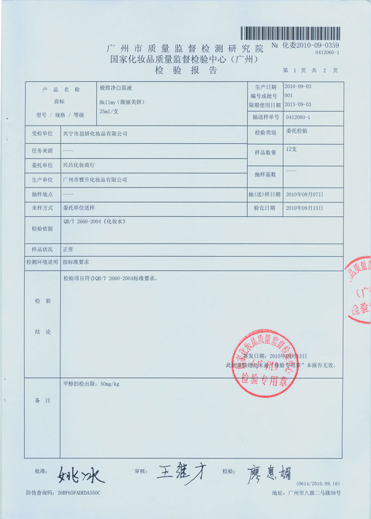 极致净白原液质检报告